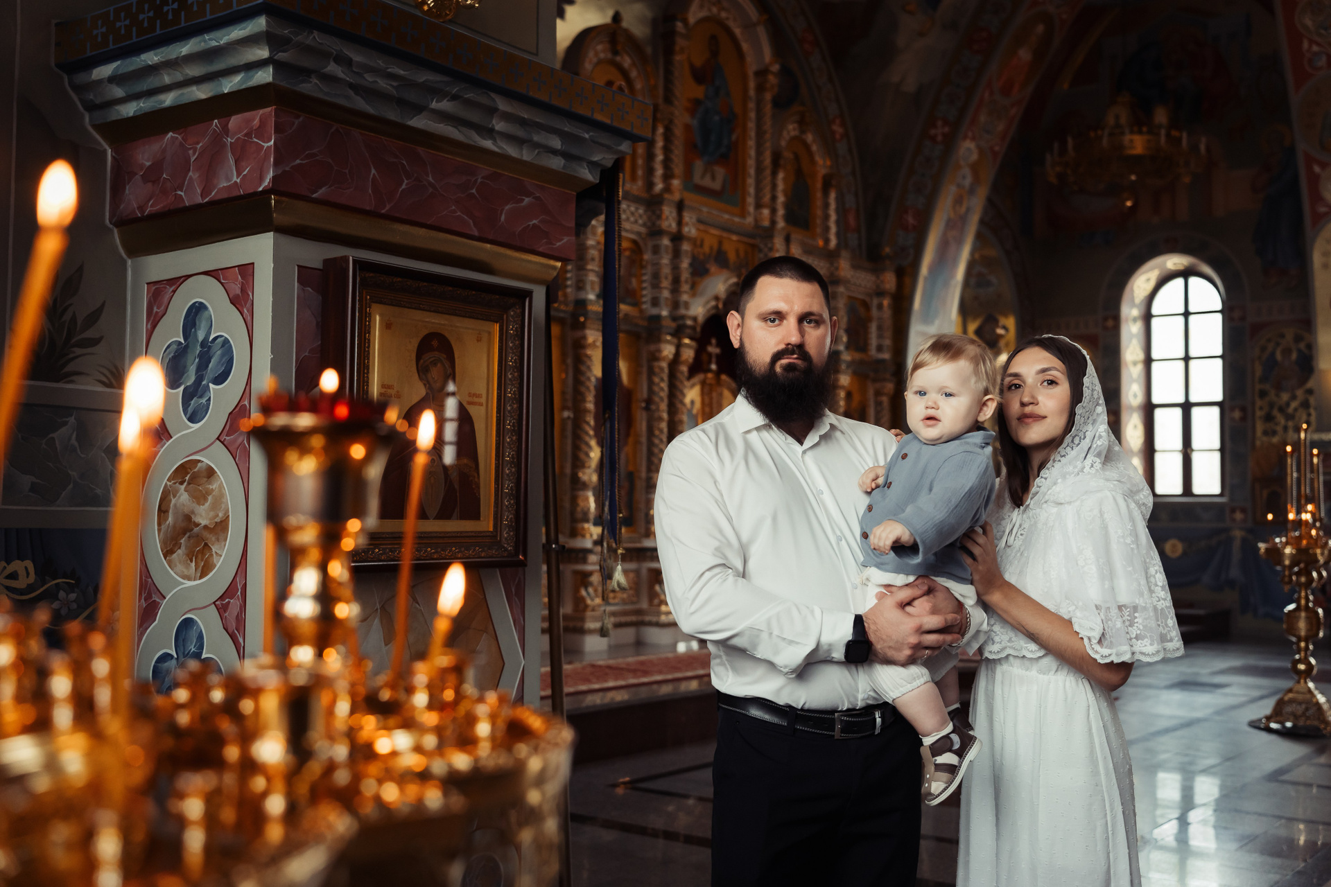 Таинство крещения проходило в нижнем храме Собора. В верхнем храме мы сделали красивые портреты для семьи и гостей